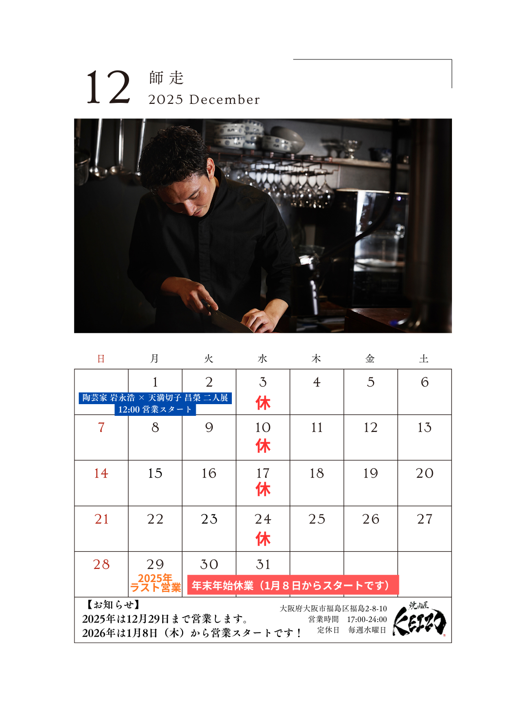 焼肉屋KEIZOの年内の営業は、2025年12月29日(月)までとなります。